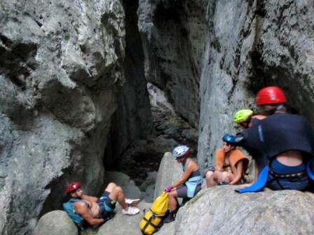 Grupa koja je krenula sa momcima iz Xcanyoninga već je poprilično odmakla. Šanse da ih stignemo bile su nikakve s obzirom da je mnogo ljudi u kanjonu i da je ceo prolazak usporen. Ipak, sreli smo se na izlasku. A onda, markiranom stazom na početak. Presvlačenje, klopa i putovanje se nastavlja ka kanjonu Morače tj, u kanjon Bogutovskog potoka.